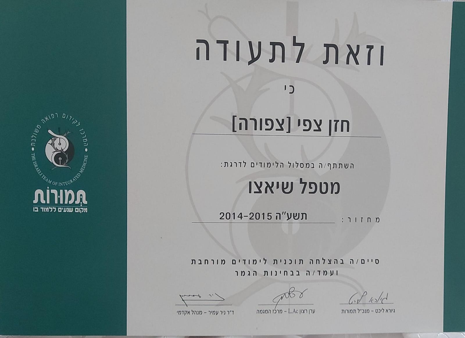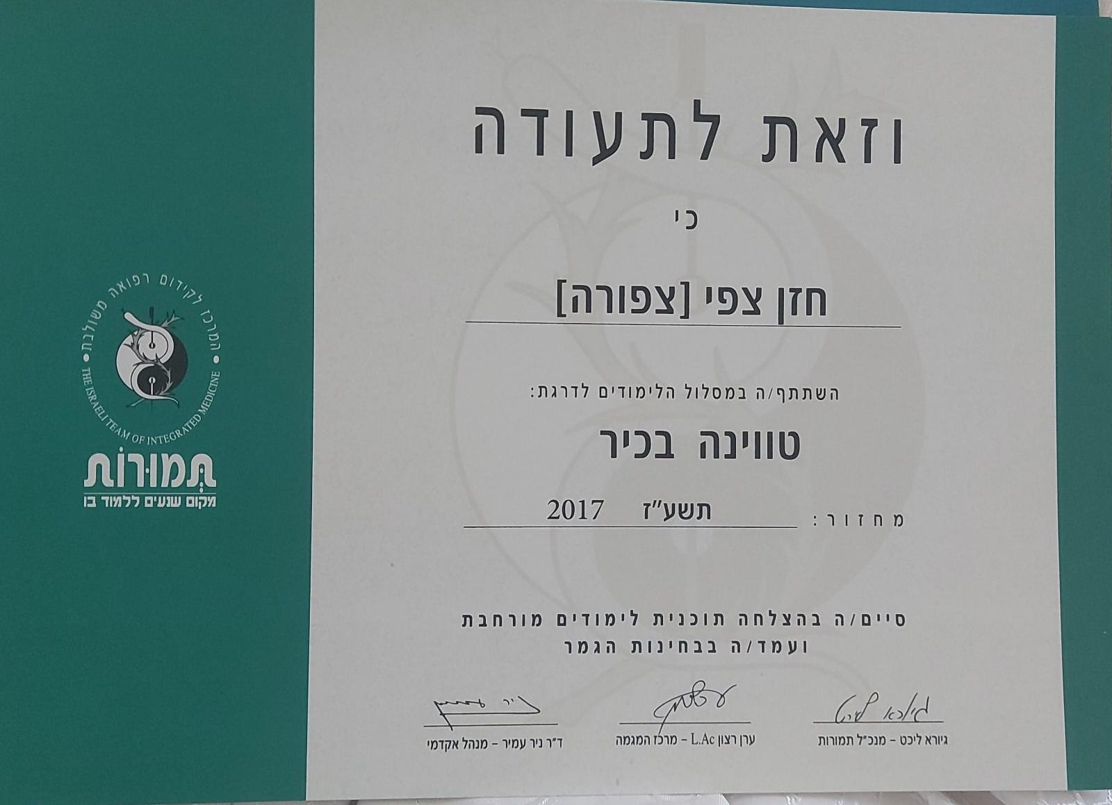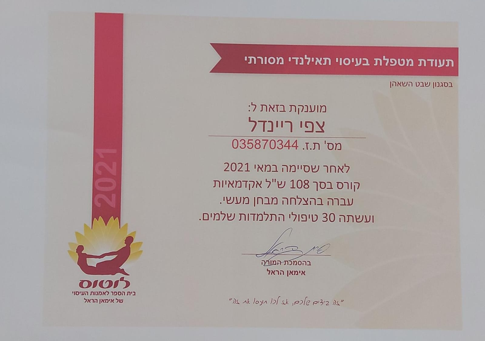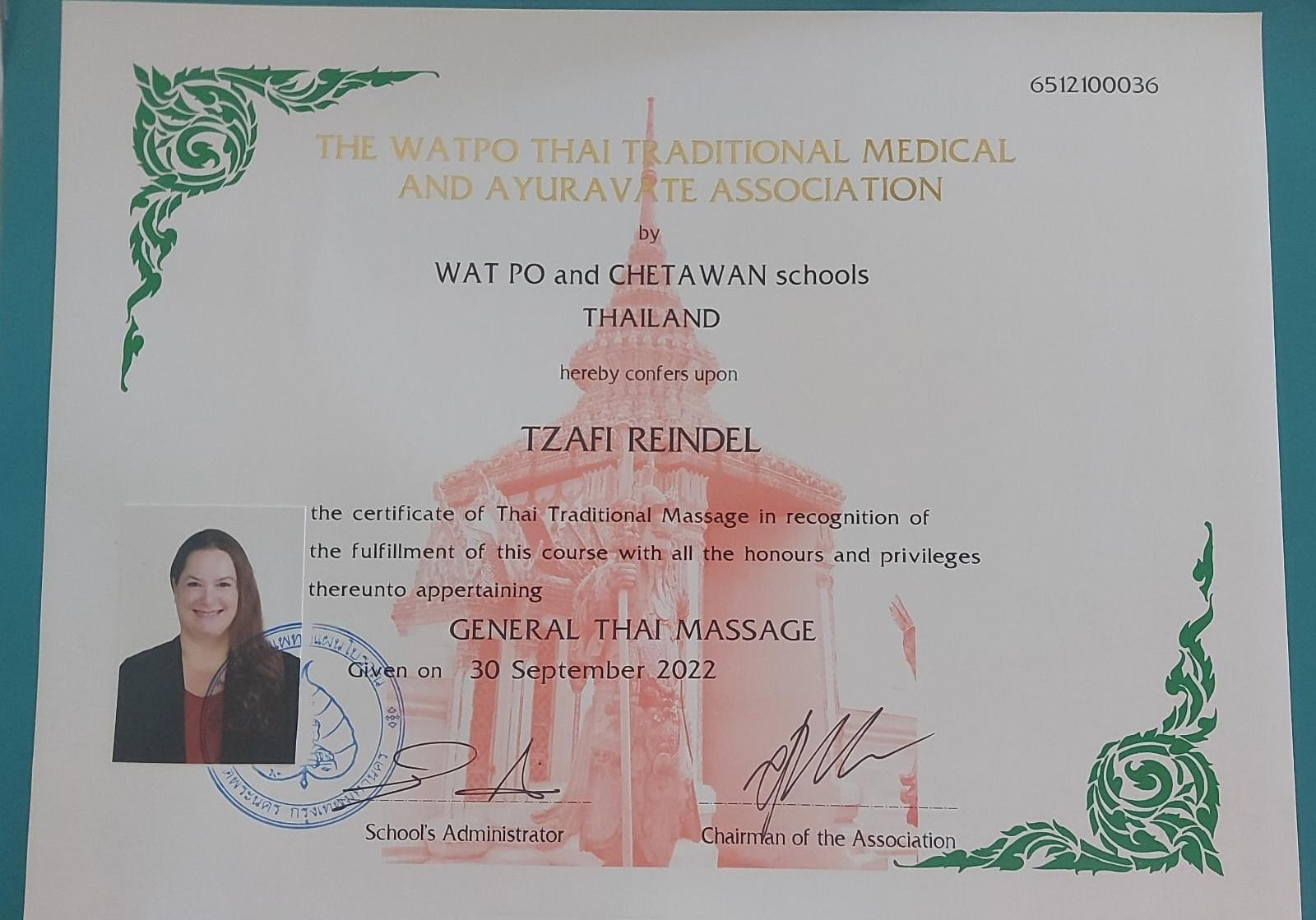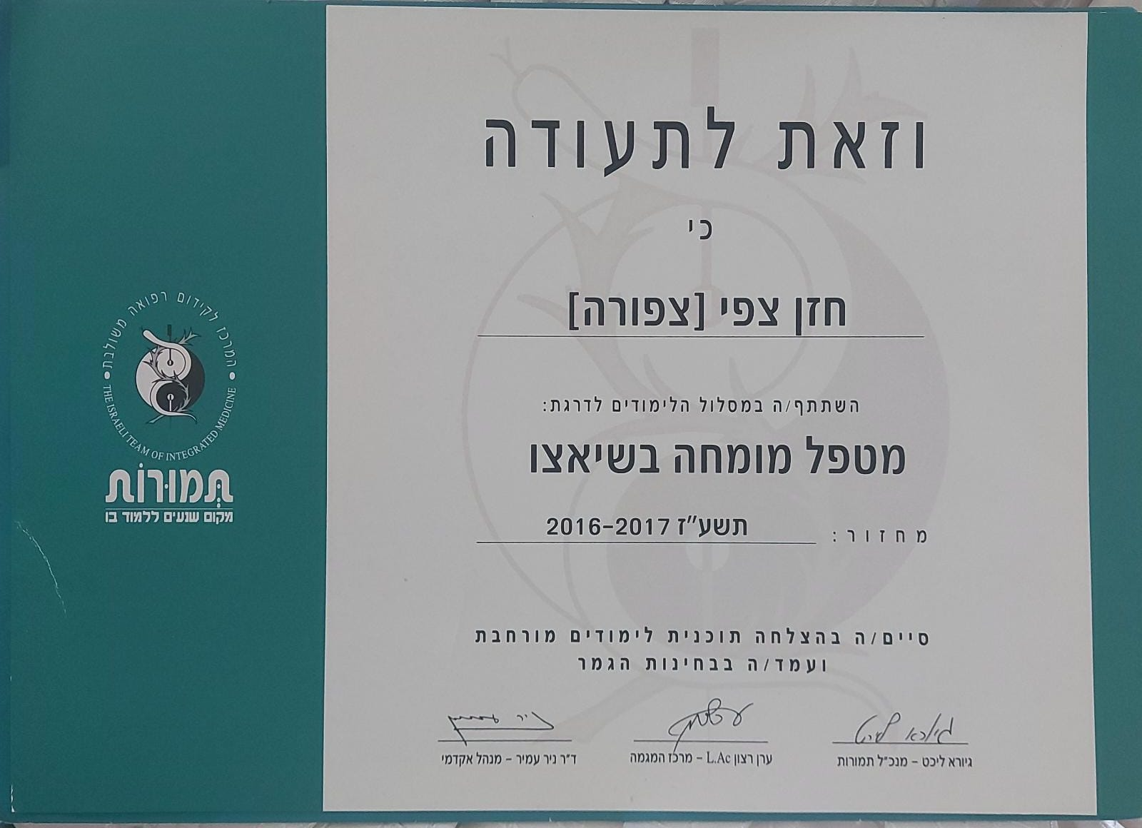 במסגרת לימודיי, למדתי גם ייעוץ תזונתי סיני, שימוש בכוסות רוח ובאמצעי חימום סינים שונים וקומפרסים של צמחים תאילנדים.